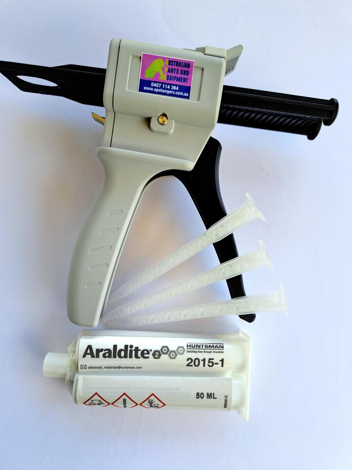 The  APE11/12 is a manual adhesive applicator gun. It allows the user to deliver a measured quantity of adhesive with ease, accuracy and minimum wastage. Suits 50ml Araldite 2014-2 and 2015-1.